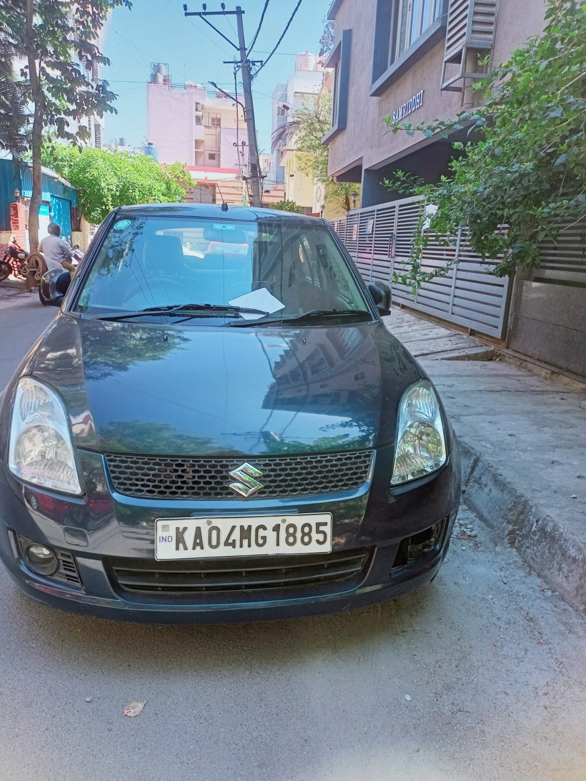 One car bearing reg. no. KA04MG1885 is parked opposite to our house and it is causing trouble for vehicle movement on that road. Nobody has come to take it since 3 days.