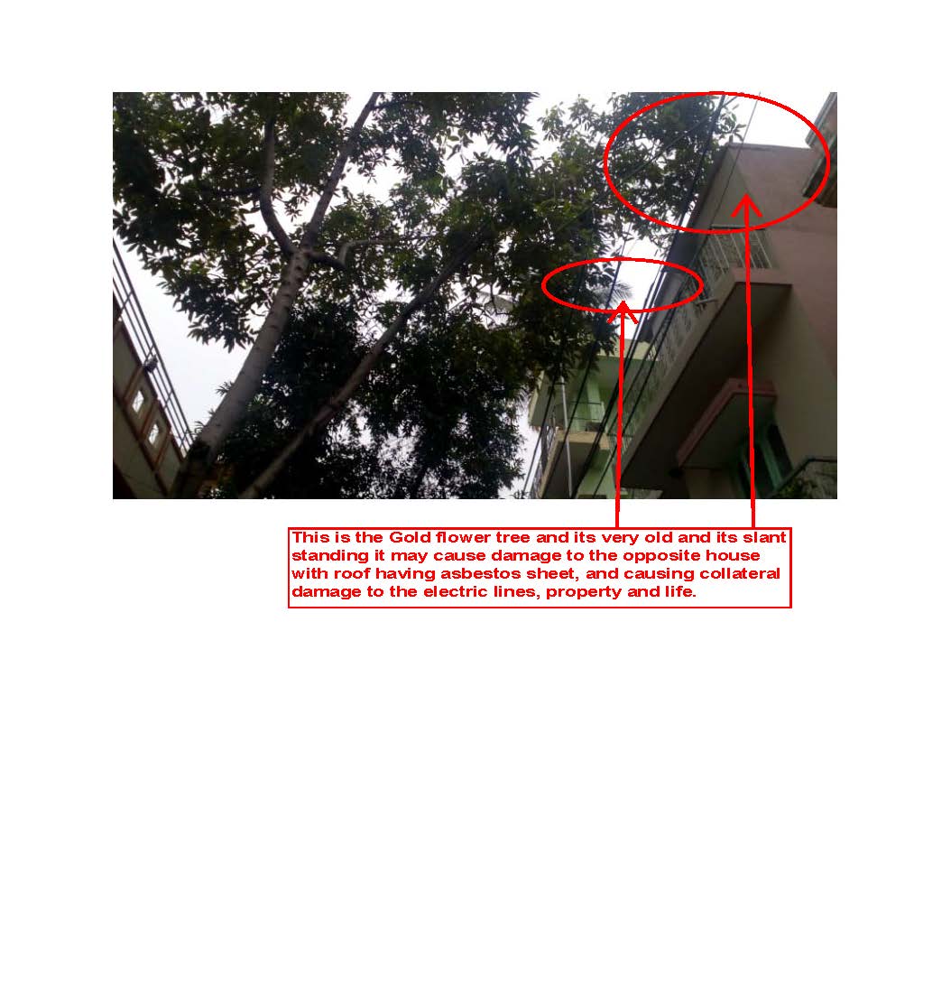 To, The Tree Officer / Deputy Conservator of Forests, BBMP Head Office / Concerned Ward Office, Bruhat Bengaluru Mahanagara Palike, Bengaluru.