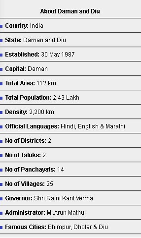 This Union Territory of the Indian sub-continent was ruled by the Portuguese for more than 450 years. This place, along with Dadra and Nagar Haveli as well as Goa, was included in the Indian Republic on 19th December of the year 1961. The region is said to have one of the perfect blends of culture, belief, good idea and ancient civilization. The official languages of this Union Territory are as follows: Marathi, Hindi, Gujarati, English
